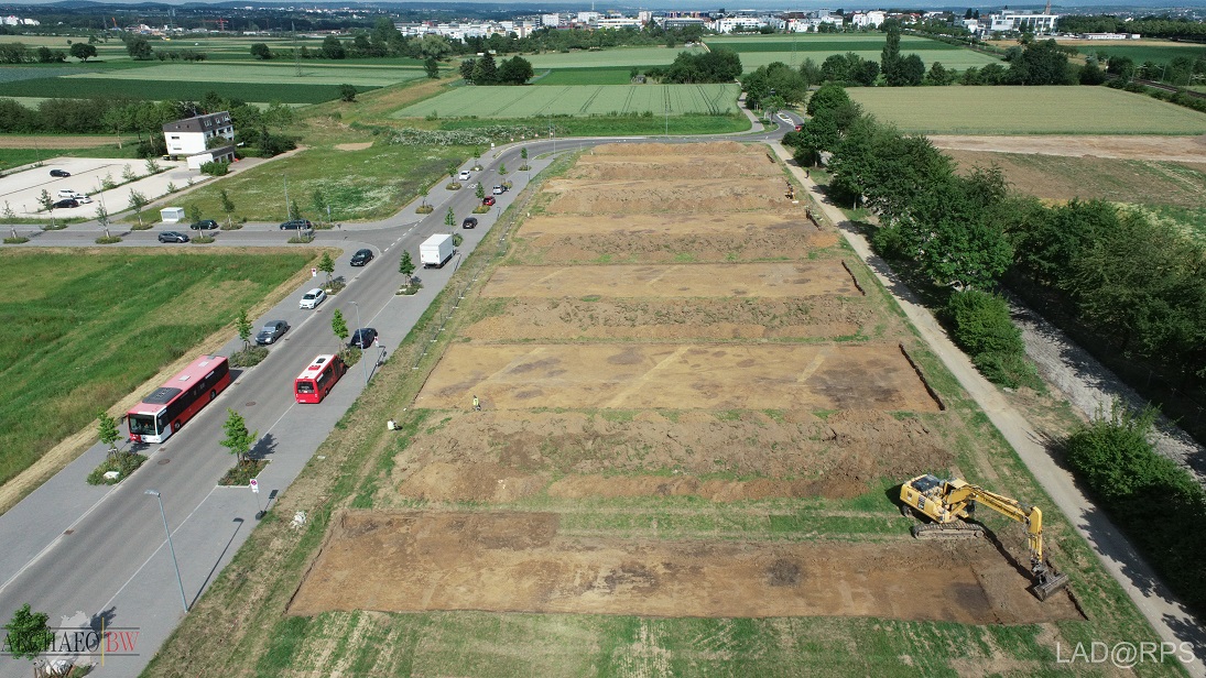 Ort: Die Fundstelle liegt in der Max-Lang Str. (unweit des Jugendkulturzentrums AREAL, Max-Lang-Str. 10 und ca. 300m vom S/U-Bahn-Halt "Leinfelden-Bahnhof" entfernt) in 70771 Leinfelden-Echterdingen. Am Grabungscamp ist der Treffpunkt zur Führung.